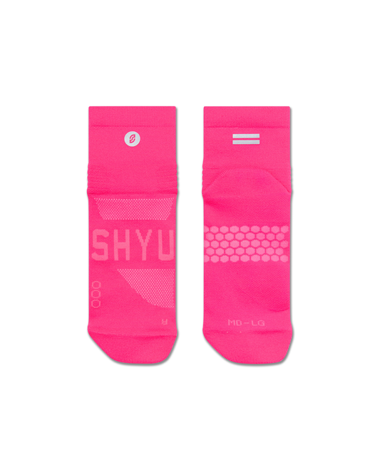 SHYU (pronounced ‘shoo’) is a combination of the words ‘shoe’ and ‘you’. We make performance running socks designed for you and your race days super shoe.