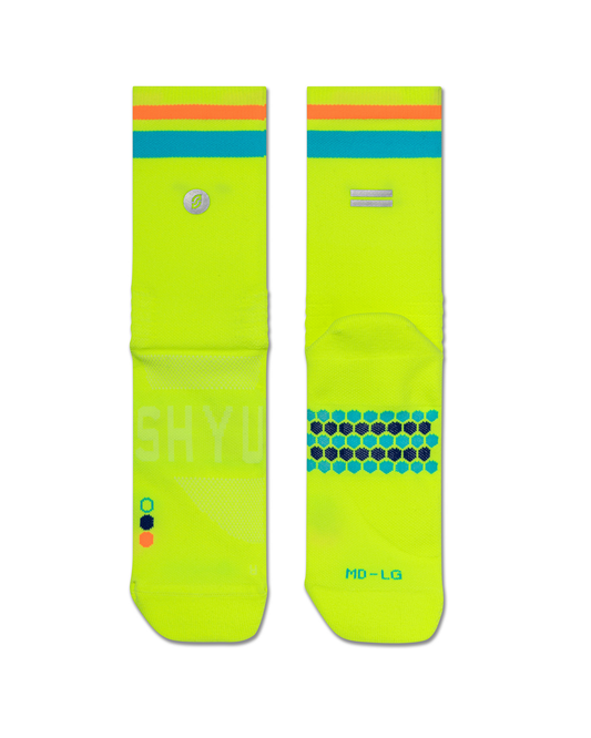 SHYU (pronounced ‘shoo’) is a combination of the words ‘shoe’ and ‘you’. We make performance running socks designed for you and your race days super shoe.