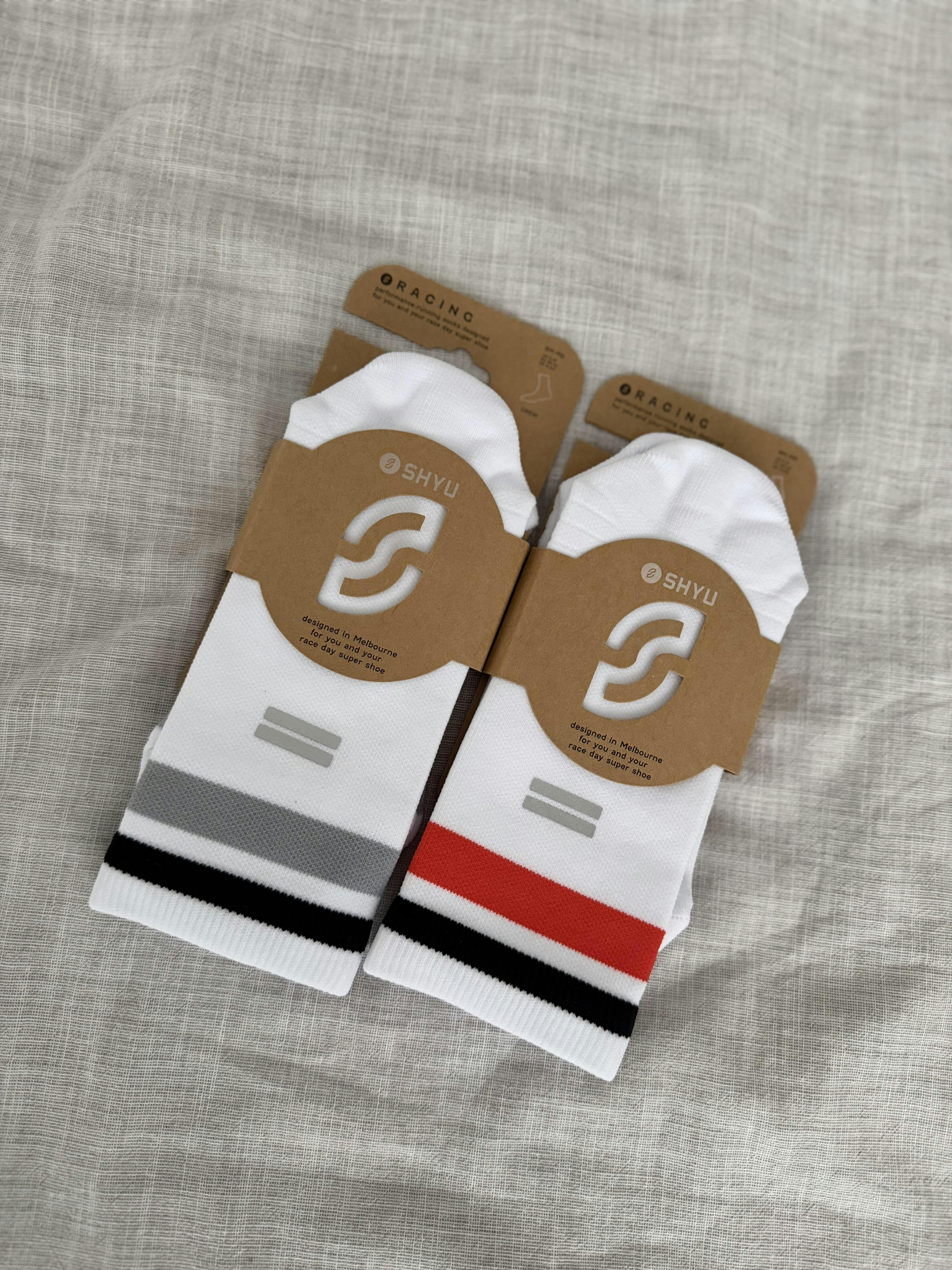 SHYU performance running socks - the first & only socks designed to match the race day shoe they are worn with.