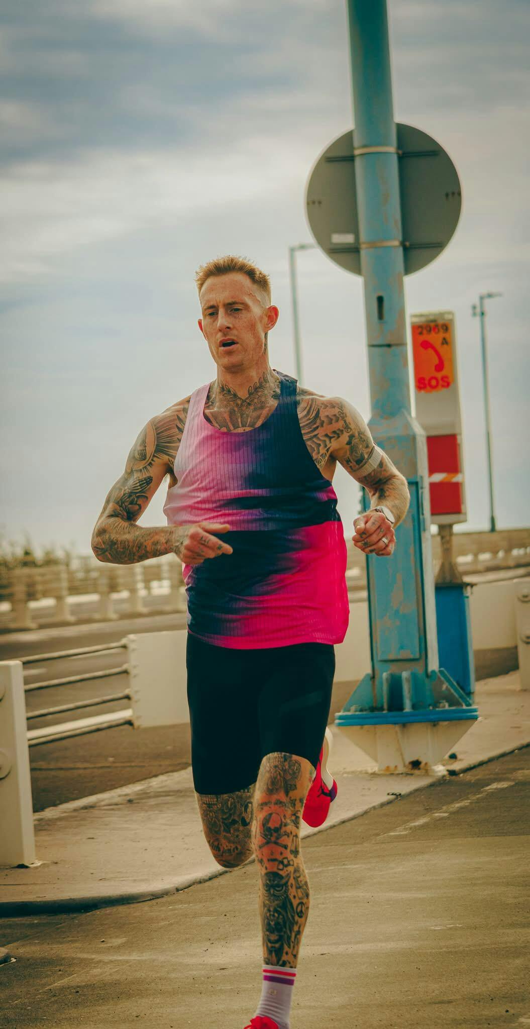 The main difference is their purpose. The ‘racing’ SHYUs have been designed to complement your high performance racing shoe, whereas our ‘training’ SHYUs are more neutral in colour and are designed to complement any shoe and on any run. Because of this different purpose, you’ll find our ‘racing’ SHYU to be a little lighter with less overt cushioning around the ankle compared to its ‘training’ counterpart.