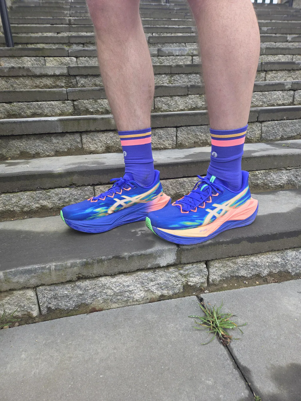 Great race-day socks. Super comfortable, lightweight, and stay perfectly in place with no rubbing or slipping. The colourway looks great with running shoes too. Highly recommend.