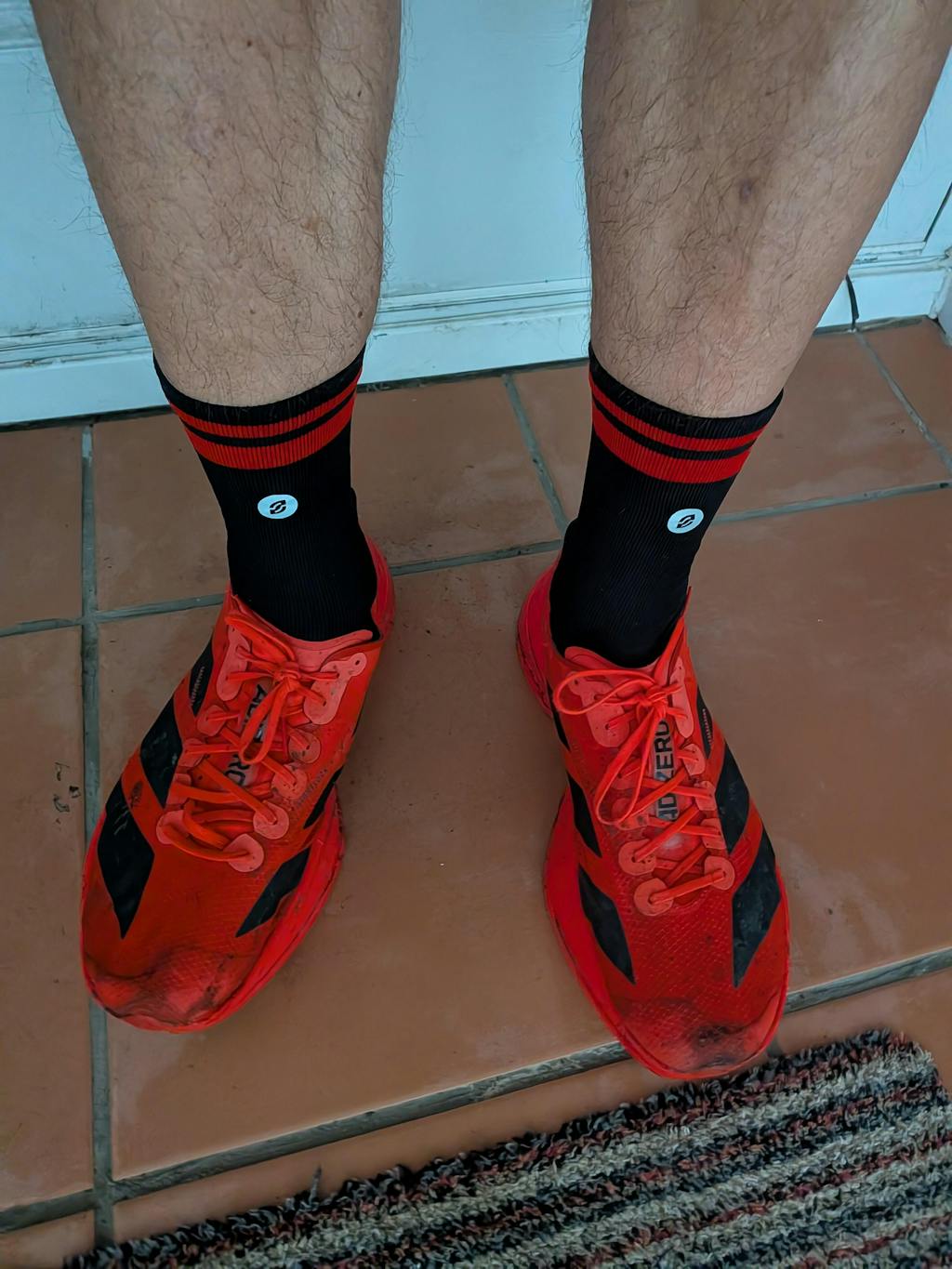 Made to match the red/black adidas© Adios Pro 4 or the wildly popular black/red evo SL, we think this one can (and will) be used to match many other shoes that feature this classic colour combination.