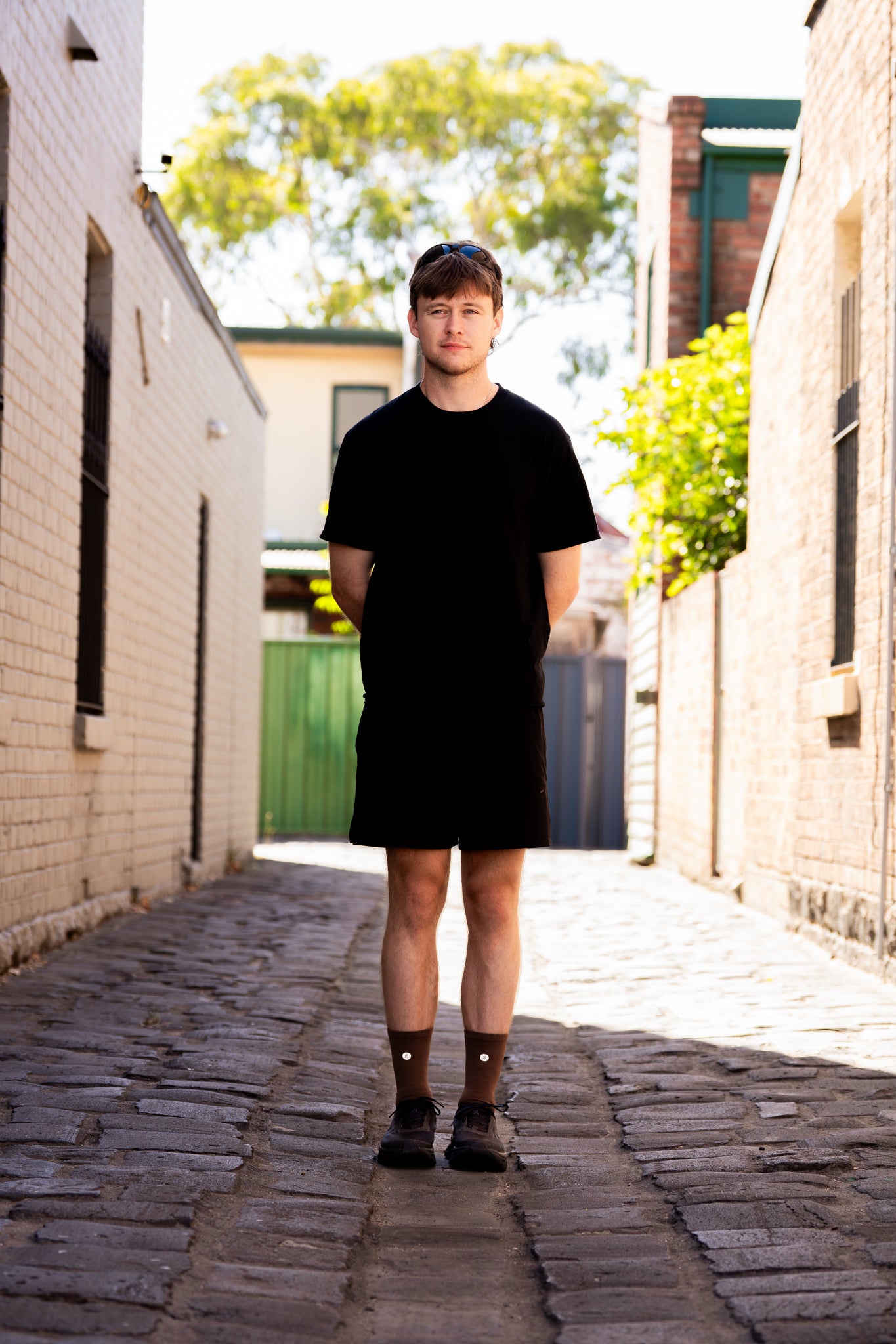 We make SHYUs in three heights; crew, quarter crew and tab. Our crew SHYU sits a little above 13cm from the foot, giving you sufficient support whilst maximising the opportunity to complement the shoe. We recently changed the design of our quarter crew design so the design can be seen just above the ankle when worn with a shoe. Our new tab cut has all the same great features as the crew and quarter crew, just less height. It sits at the base of the ankle and is generally not visible when worn with a shoe.