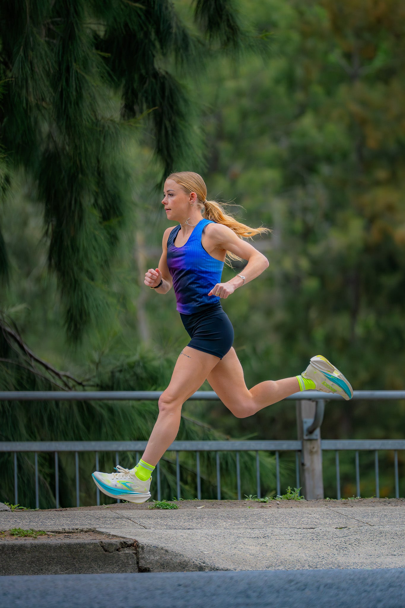 The main difference is their purpose. The ‘racing’ SHYUs have been designed to complement your high performance racing shoe, whereas our ‘training’ SHYUs are more neutral in colour and are designed to complement any shoe and on any run. Because of this different purpose, you’ll find our ‘racing’ SHYU to be a little lighter with less overt cushioning around the ankle compared to its ‘training’ counterpart.