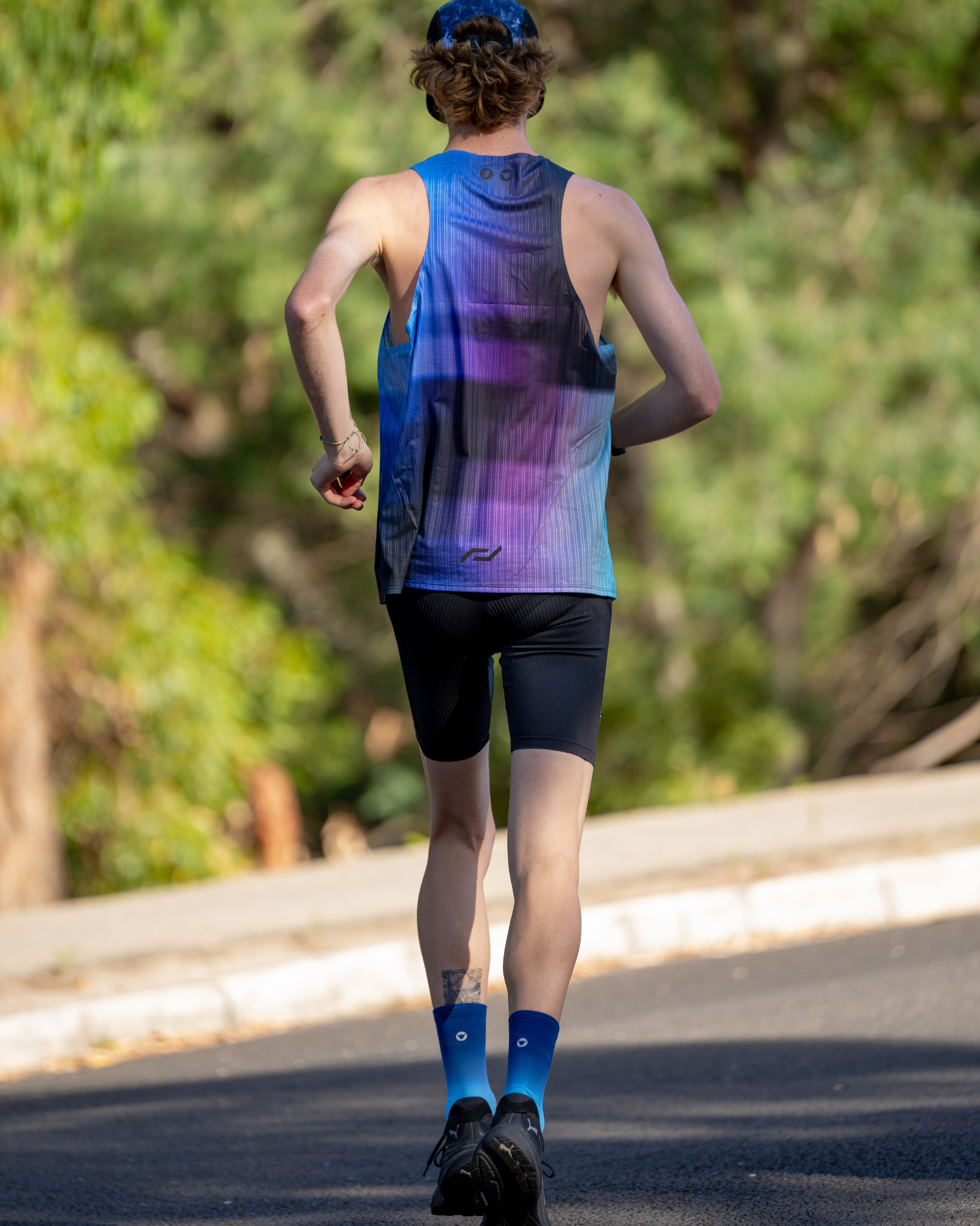 The main difference is their purpose. The ‘racing’ SHYUs have been designed to complement your high performance racing shoe, whereas our ‘training’ SHYUs are more neutral in colour and are designed to complement any shoe and on any run. Because of this different purpose, you’ll find our ‘racing’ SHYU to be a little lighter with less overt cushioning around the ankle compared to its ‘training’ counterpart.